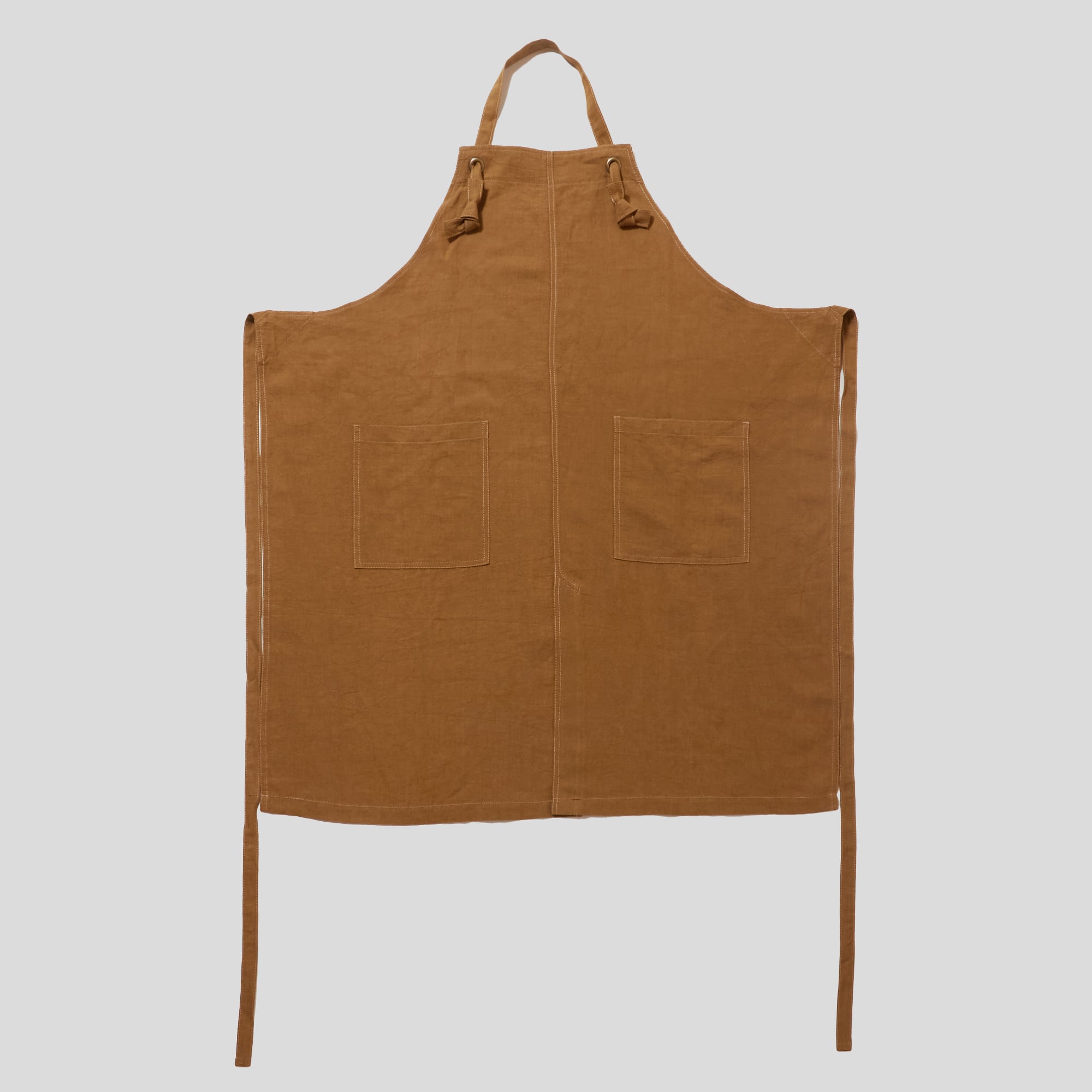 私たちのエプロンはエプロンと同じ素材でつくったリネンバックに入れてお届けします。エプロンを保管する際や、エプロンとお揃いのちょっとした小物入れとしてもご活用いただけます。